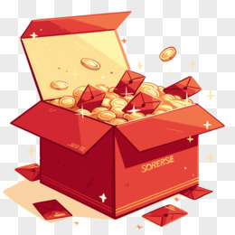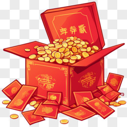3D卡通风新年元素装满金币和红包的礼盒免抠元素