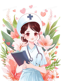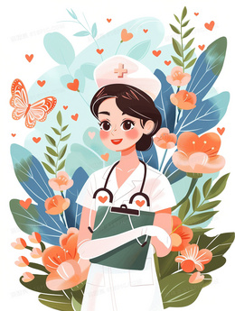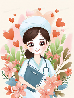 小清新拿着病历本的儿科护士侧身3D模型效果插画