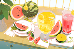 卡通风西瓜和西瓜汁柠檬汁插图