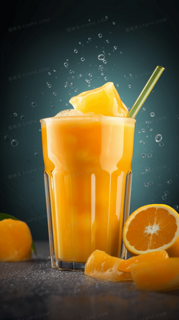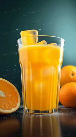 一杯加了冰块的冰爽鲜榨橙汁