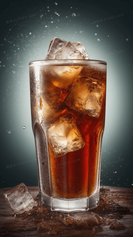 一杯加了冰块的冰爽可乐夏日饮料