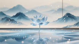 新中式弥散光效设计琉璃质感荷花悬浮山水间