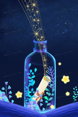 夜晚星空漂流瓶背景