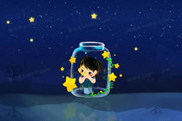 深蓝插画风星空加漂流瓶合成背景