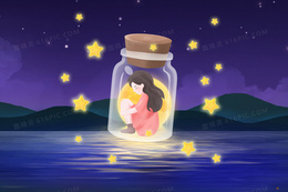 浪漫星空漂流瓶文艺清新夜景插画