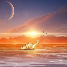 水中的漂流瓶淘宝主图背景