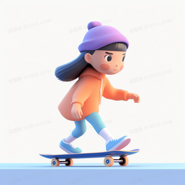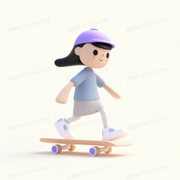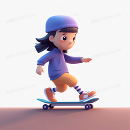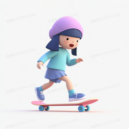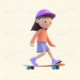 > 玩滑板的可爱女孩3D模型