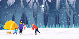 帐篷露营卡通小雪插画创意合成背景