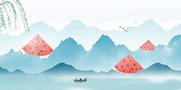 中国风二十四节气夏至西瓜山水合成背景