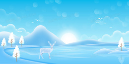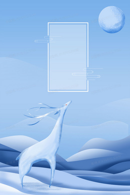 二十四节气霜降寒露蓝色清新麋鹿背景
