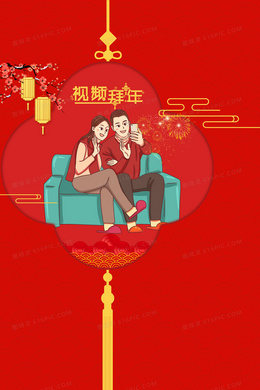 春季就地过年视频拜年中国风红色喜庆背景