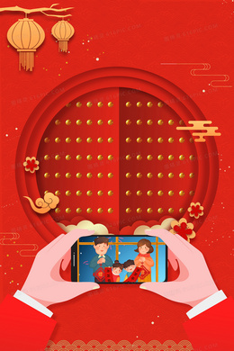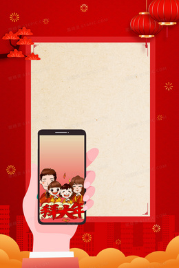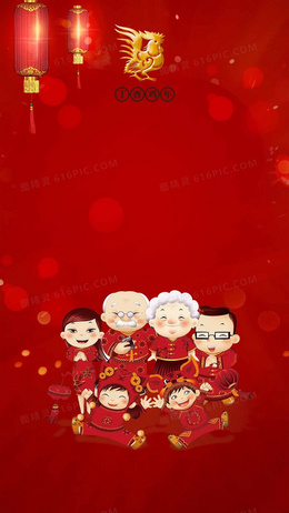 红色喜庆春节家人团圆H5背景
