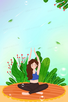 简约手绘养生瑜伽运动背景