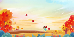 > 手绘卡通二十四节气秋分背景