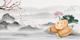 中国风传统植物莲藕水墨风荷花背景