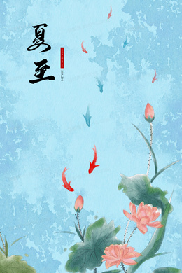 夏至池塘金鱼围绕荷花中国风水墨插画