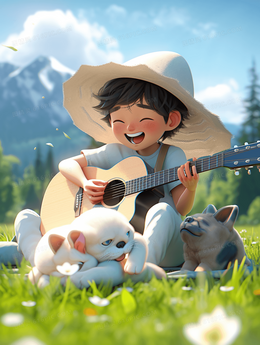 当前位置: 图精灵 > 背景图库 > 插画 > 坐在草地上弹吉他的卡通男孩人物插画