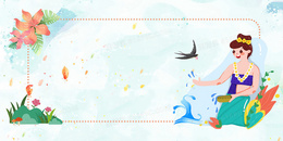 泼水节傣族少女泼水水墨中国风简约手绘背景