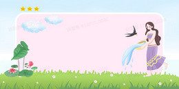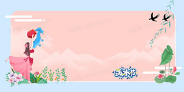 泼水节傣族少女泼水风景水墨中国风简约手绘背景