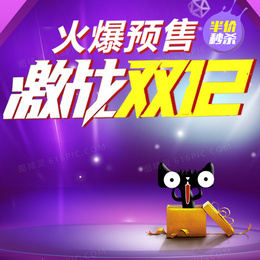 激战双12紫色PSD分层主图背景素材