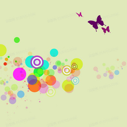 清新彩色圆圈蝴蝶背景素材