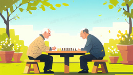 公园下国际象棋的两个老年人背景