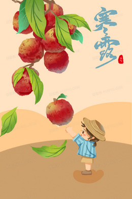 寒露节气孩子摘荔枝插画