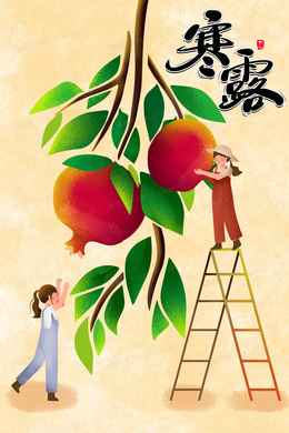 寒露节气女孩摘石榴插画