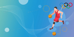 清新手绘卡通篮球比赛奥运会加油背景