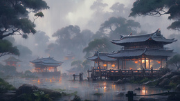 > 烟雨蒙蒙的江南美景插画