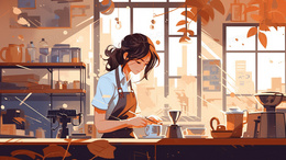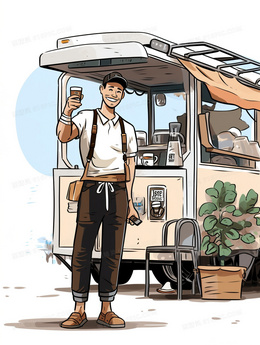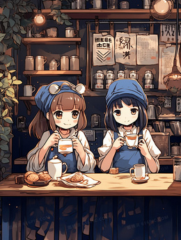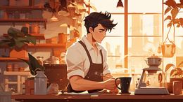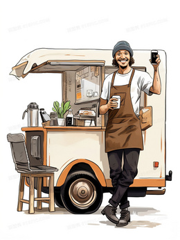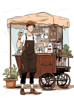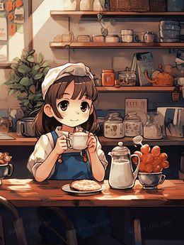 卡通人物咖啡店做咖啡餐饮下午茶插画