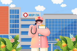 在医院上班的护士手绘女性职业组图插画