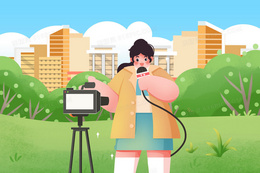 记者在户外播报新闻手绘女性职业组图插画