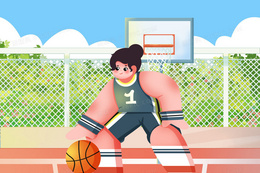 女孩在篮球场练球手绘女性职业组图插画