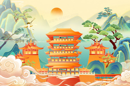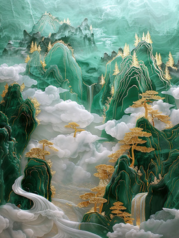 当前位置: 图精灵 > 背景图库 > 插画 > 3D立体琉璃质感国潮山水风景插画