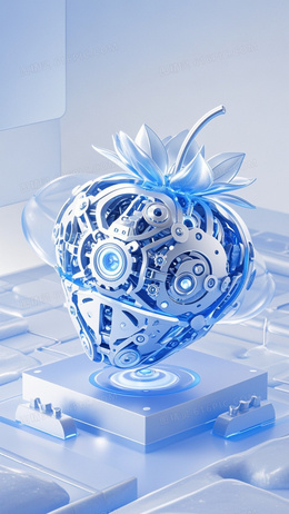 冰蓝色的背景机械构造的巨大草莓