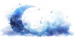 云中弯弯月亮蓝色星星的梦幻艺术插画
