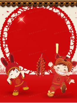 剪纸福娃灯笼春节背景