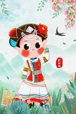 当前位置: 图精灵 > 背景图库 > 插画 > 五十六个民族之毛南族Q版人物插画