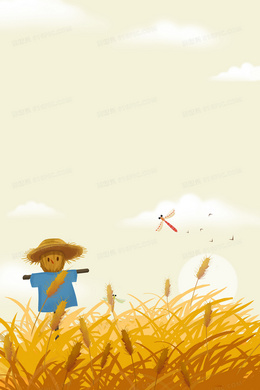 卡通手绘背景农作物成熟稻田稻草人背景