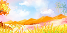 手绘丰收稻田背景