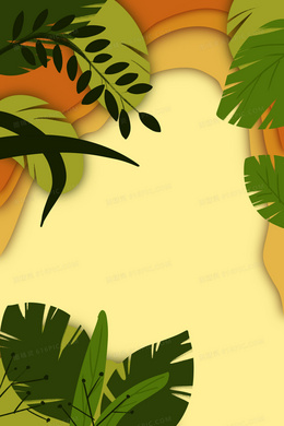 暖色夏日剪纸风手绘插画植物背景