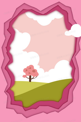 粉色剪纸夏日风景手绘插画背景