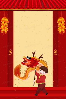 红色中国风舞龙二月二龙抬头背景