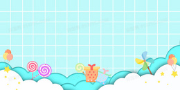 蓝色剪纸风清新卡通涂鸦可爱卡通儿童背景