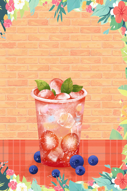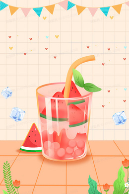 简约插画风美味冰饮合成背景