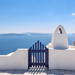 希腊式建筑海边背景