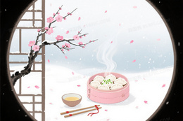 浅蓝灰水墨淡雅梅枝蒸笼背景