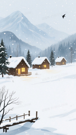 冷蓝浅灰水彩雪景木屋背景