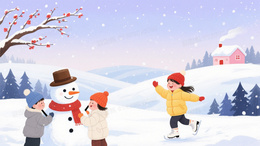 浅蓝水彩雪景童趣红墙背景